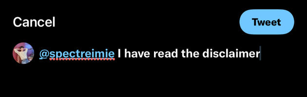 If you plan on following, @ mention my account with a tweet saying "I have read the disclaimer."